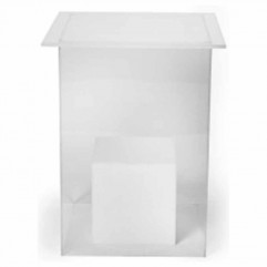 Clear Acrylic Tabletop with Clear Acrylic Pedestal Base and White Translucent Cube