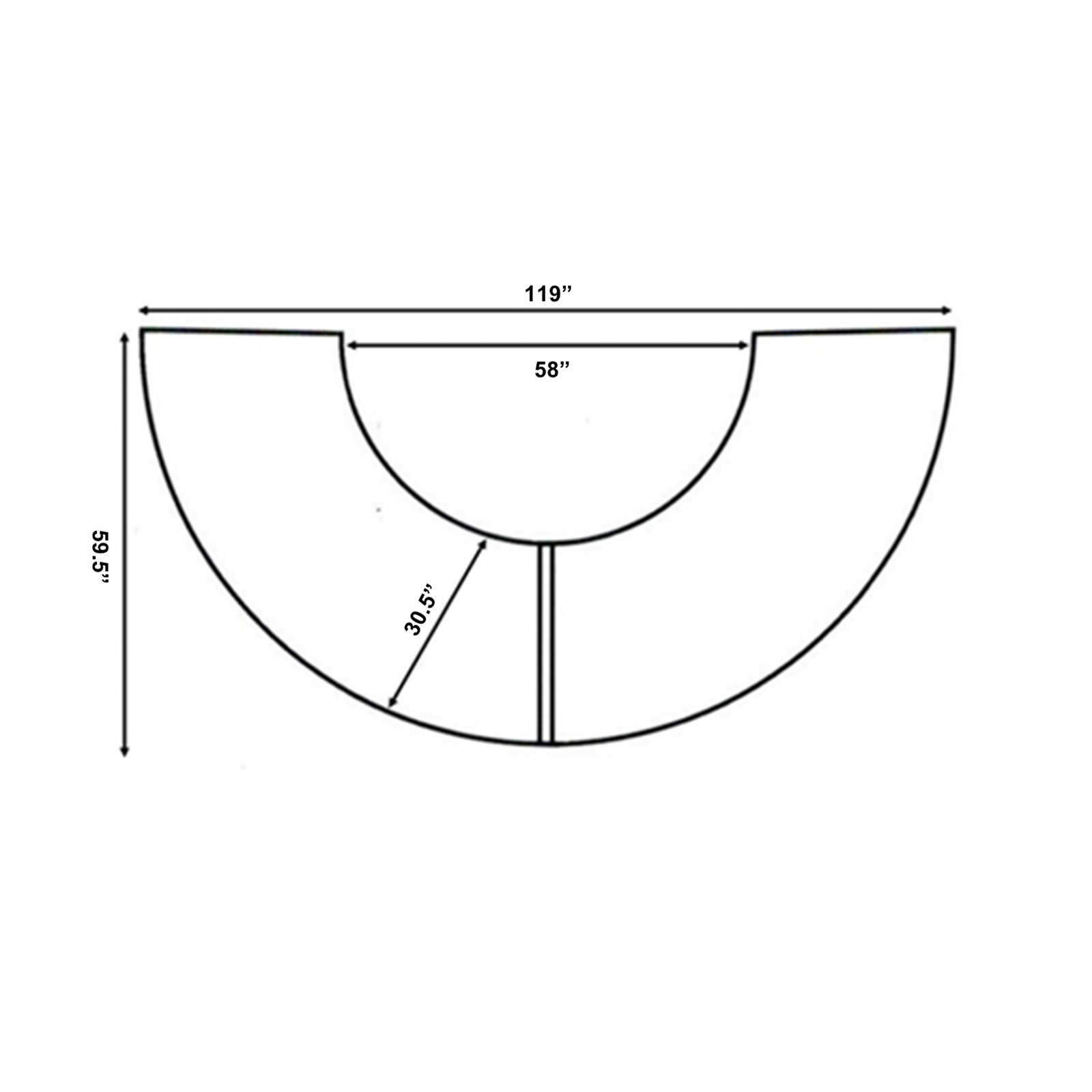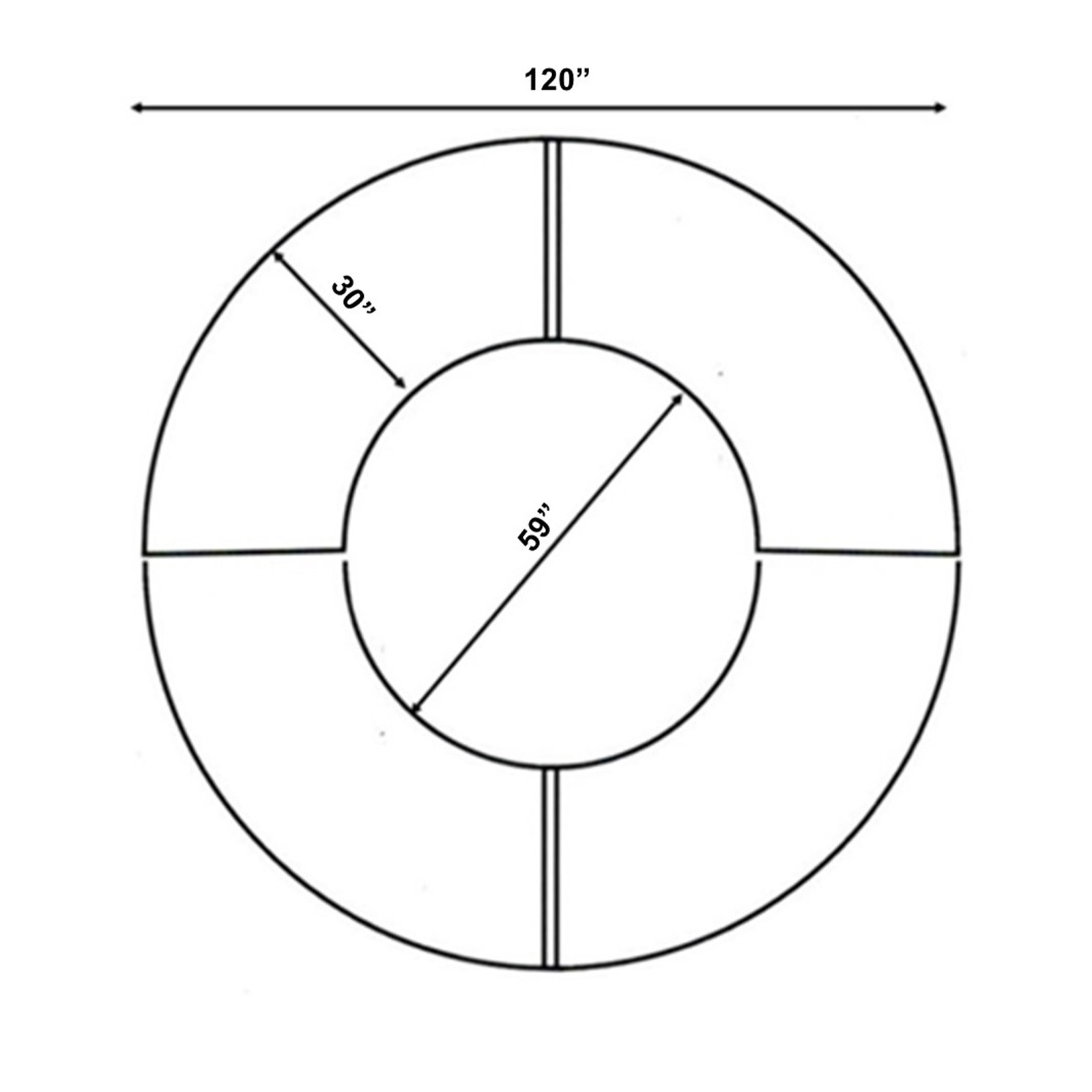 4 tables will create a 118" round table with a 58" center hole. Seats 15