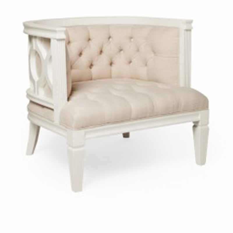 Wood Laser Cut Design in a Natural White Wood/Linen Upholstery